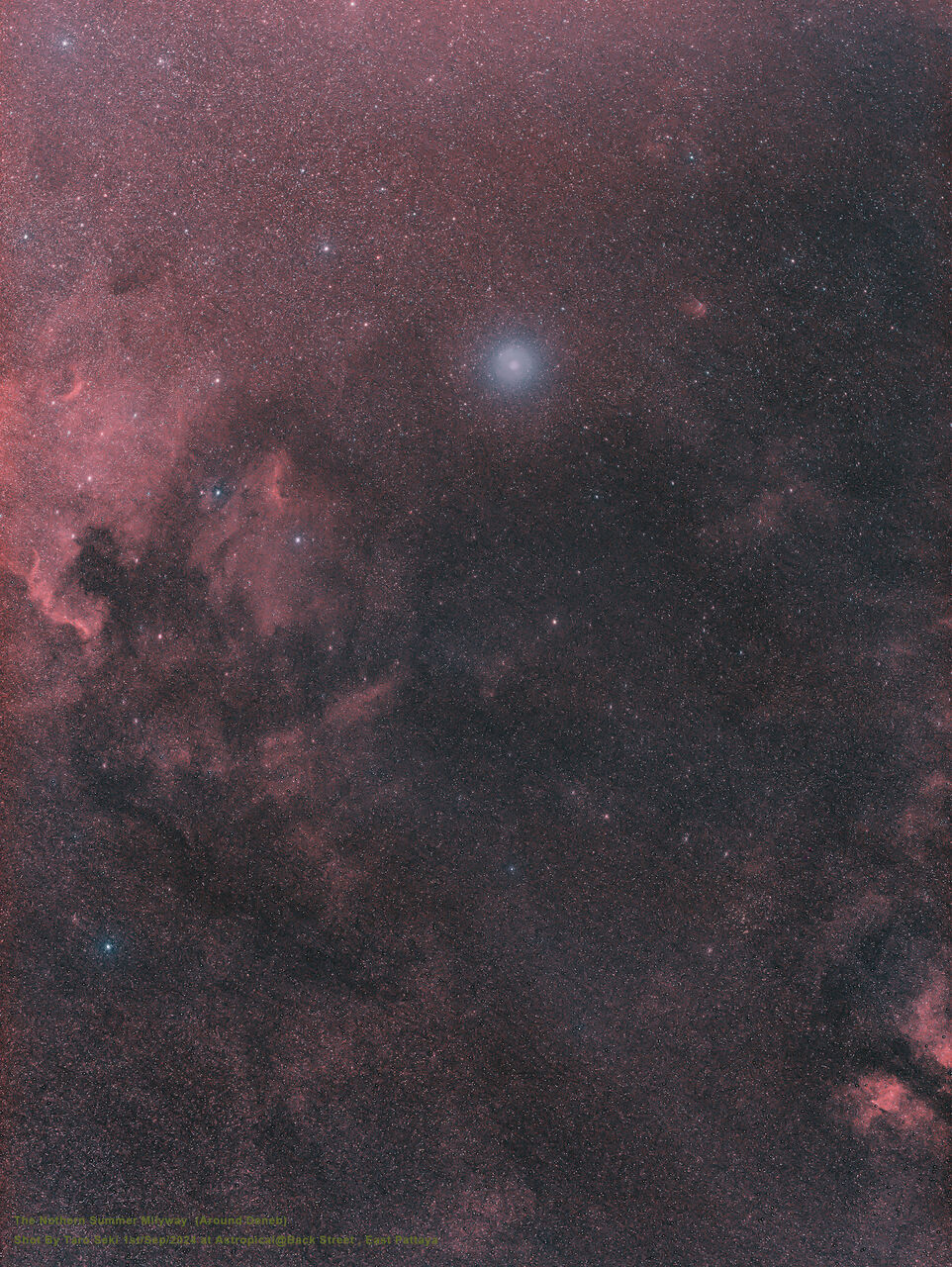 Cygnas wallの南にこんな暗黒帯があるとは知らなかった。メキシコ湾を頭にした周辺の暗黒帯の形は、まるでカモメ星雲がすっぽり抜け出した形だな。
