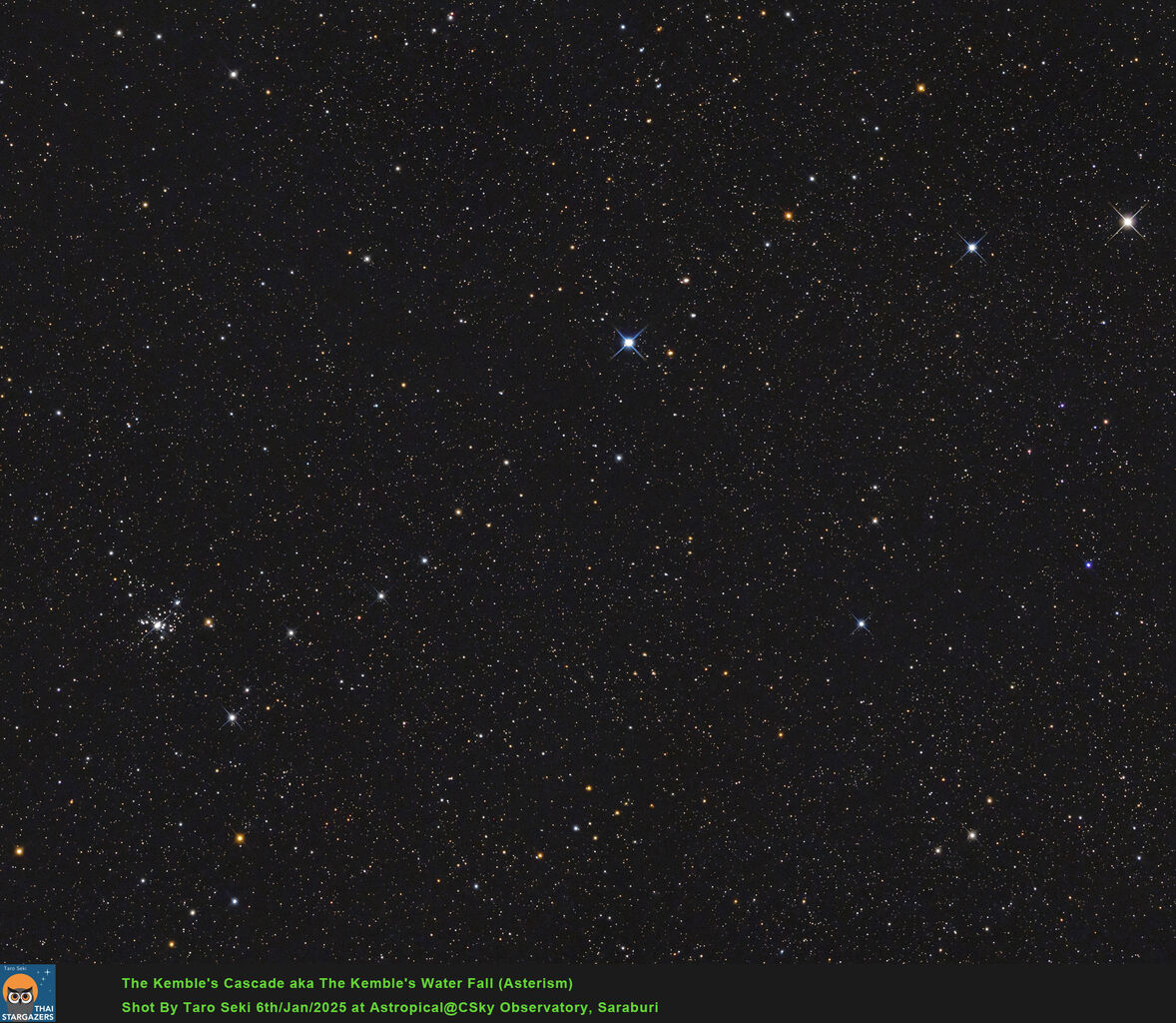 A cascade of about 20 stars located northwest of NGC1502 (Jolly Roger Cluster) in the constellation Camelopardalis.