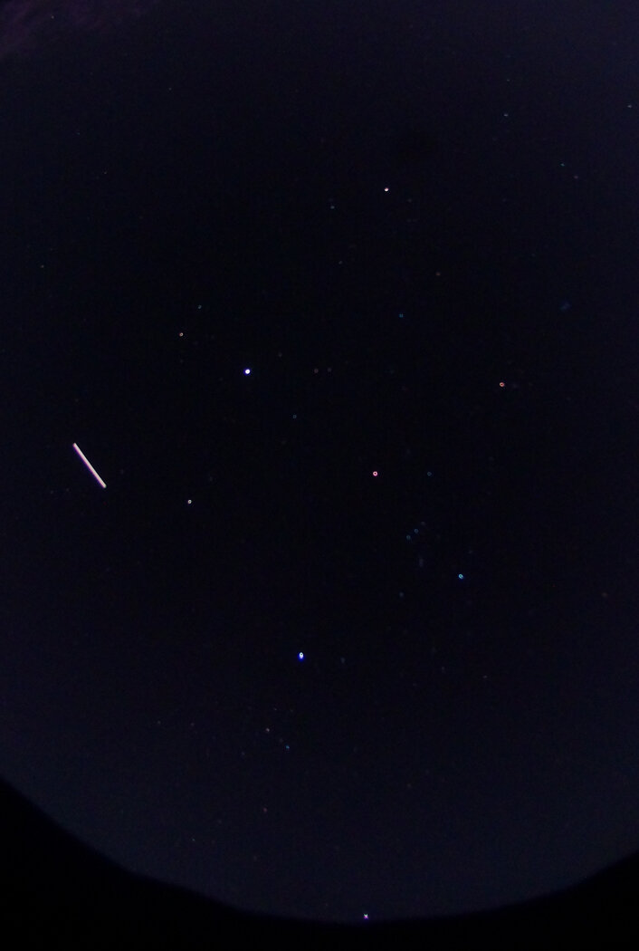 The observatory's all-sky camera captured the winter Great Hexagon, along with Jupiter, Canopus, and a shooting star.